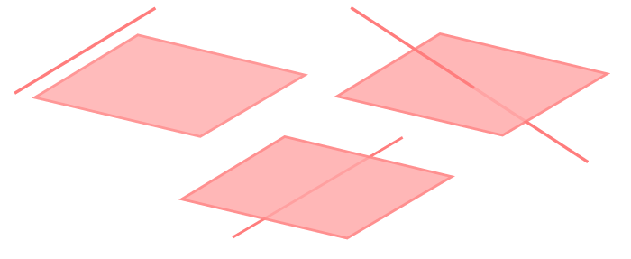 Linjen är parallell med planet och ligger inte i planet: inga skärningspunkter
